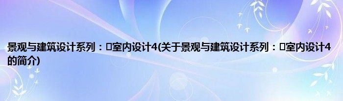 本文关于景观与建筑设计系列:㎡室内设计4的简介就讲解完毕,希望对大家有所帮助。
