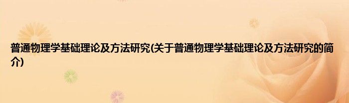 本文关于普通物理学基础理论及方法研究的简介就讲解完毕,希望对大家有所帮助。