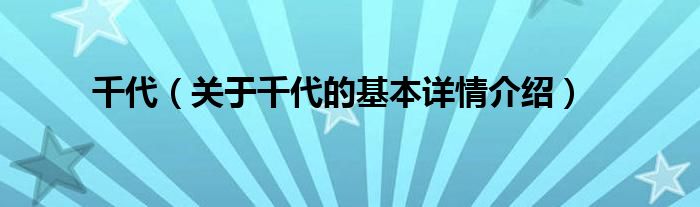 本文关于千代的基本详情介绍就讲解完毕,希望对大家有所帮助。