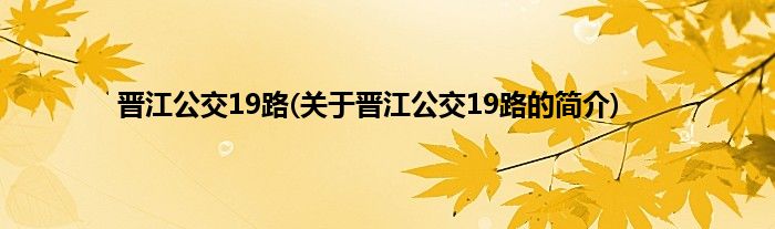 本文关于晋江公交19路的简介就讲解完毕,希望对大家有所帮助。