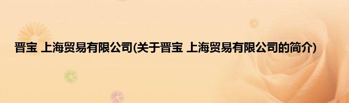 本文关于晋宝 上海贸易有限公司的简介就讲解完毕,希望对大家有所帮助。