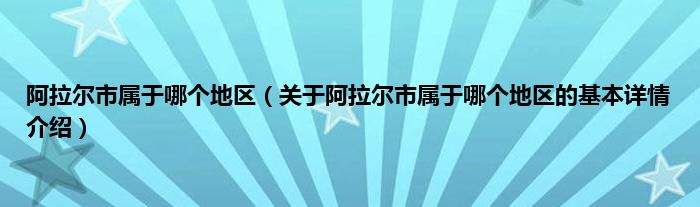 本文关于阿拉尔市属于哪个地区的基本详情介绍就讲解完毕,希望对大家有所帮助。