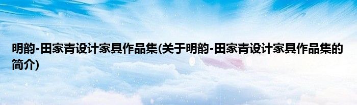 大家好,明韵-田家青设计家具作品集,关于明韵-田家青设计家具作品集的简介很多人还不知道,现在让我们一起来看看吧!