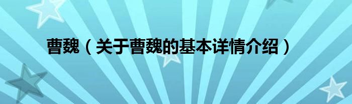 本文关于曹魏的基本详情介绍就讲解完毕,希望对大家有所帮助。