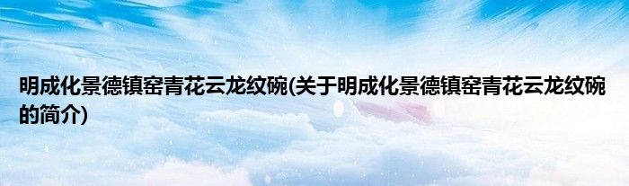 本文关于明成化景德镇窑青花云龙纹碗的简介就讲解完毕,希望对大家有所帮助。