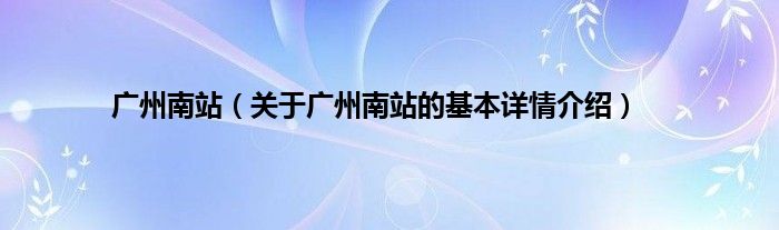 本文关于广州南站的基本详情介绍就讲解完毕,希望对大家有所帮助。