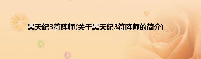 大家好,昊天纪3符阵师,关于昊天纪3符阵师的简介很多人还不知道,现在让我们一起来看看吧!