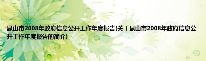 昆山市2008年政府信息公开工作年度报告(关于昆山市2008年政府信息公开工作年度报告的简介)