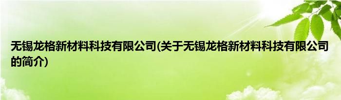 本文关于无锡龙格新材料科技有限公司的简介就讲解完毕,希望对大家有所帮助。