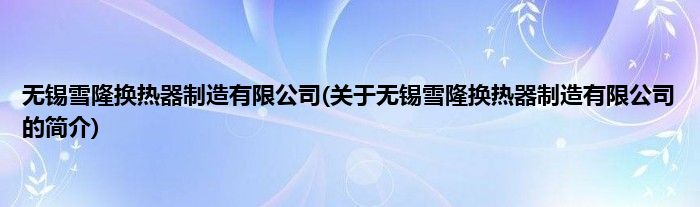 无锡雪隆换热器制造有限公司(关于无锡雪隆换热器制造有限公司的简介)