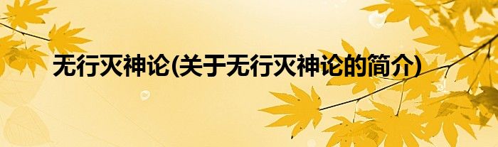 本文关于无行灭神论的简介就讲解完毕,希望对大家有所帮助。