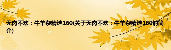 本文关于无肉不欢:牛羊杂精选160的简介就讲解完毕,希望对大家有所帮助。