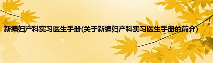 本文关于新编妇产科实习医生手册的简介就讲解完毕,希望对大家有所帮助。