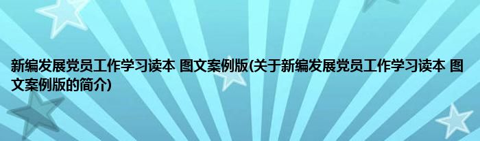 新编发展党员工作学习读本 图文案例版(关于新编发展党员工作学习读本 图文案例版的简介)