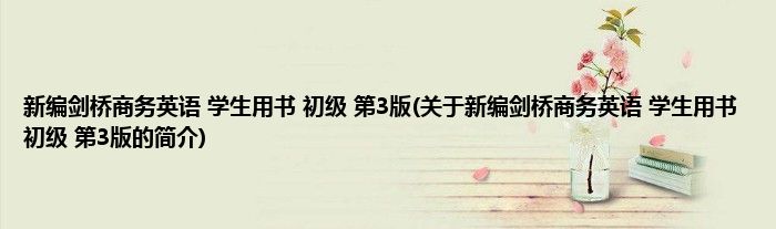 本文关于新编剑桥商务英语 学生用书 初级 第3版的简介就讲解完毕,希望对大家有所帮助。