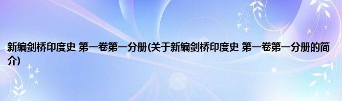 本文关于新编剑桥印度史 第一卷第一分册的简介就讲解完毕,希望对大家有所帮助。