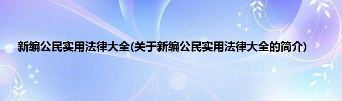 大家好,新编公民实用法律大全,关于新编公民实用法律大全的简介很多人还不知道,现在让我们一起来看看吧!