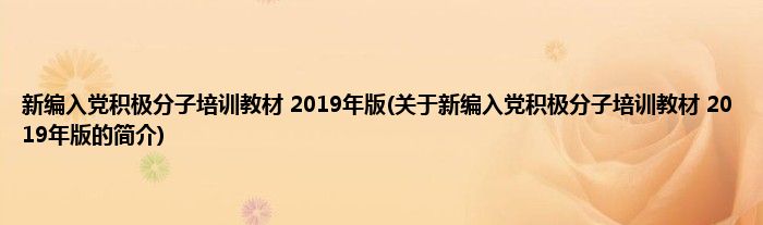 本文关于新编入党积极分子培训教材 2019年版的简介就讲解完毕,希望对大家有所帮助。