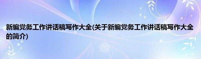 本文关于新编党务工作讲话稿写作大全的简介就讲解完毕,希望对大家有所帮助。