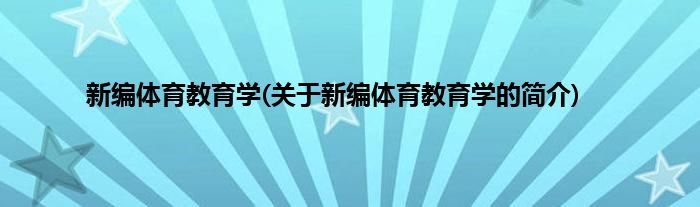 本文关于新编体育教育学的简介就讲解完毕,希望对大家有所帮助。