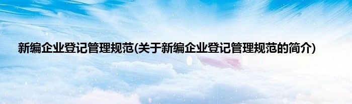 本文关于新编企业登记管理规范的简介就讲解完毕,希望对大家有所帮助。