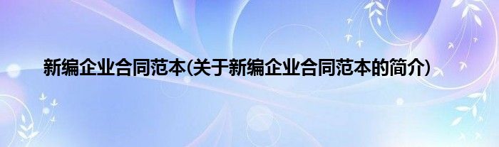 本文关于新编企业合同范本的简介就讲解完毕,希望对大家有所帮助。