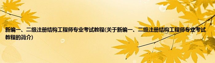 本文关于新编一、二级注册结构工程师专业考试教程的简介就讲解完毕,希望对大家有所帮助。