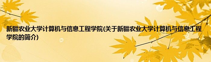 本文关于新疆农业大学计算机与信息工程学院的简介就讲解完毕,希望对大家有所帮助。