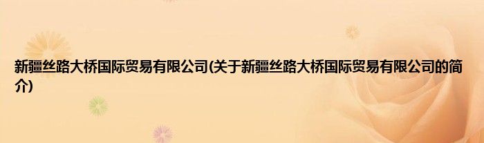 本文关于新疆丝路大桥国际贸易有限公司的简介就讲解完毕,希望对大家有所帮助。