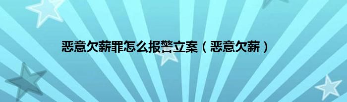大家好,精选小编来为大家解答以上问题。恶意欠薪罪怎么报警立案,恶意欠薪很多人还不知道,现在让我们一起来看看吧!