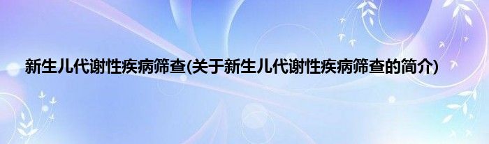 大家好,新生儿代谢性疾病筛查,关于新生儿代谢性疾病筛查的简介很多人还不知道,现在让我们一起来看看吧!