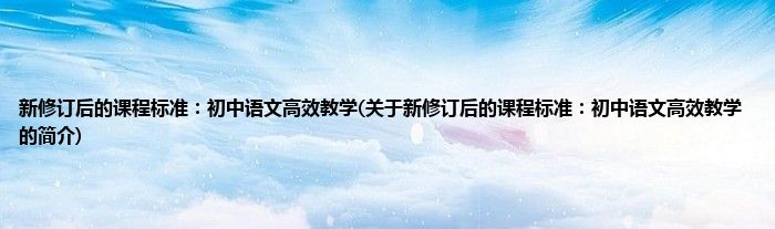 本文关于新修订后的课程标准:初中语文高效教学的简介就讲解完毕,希望对大家有所帮助。
