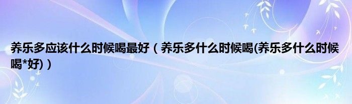 大家好,小科来为大家解答以上问题。养乐多应该什么时候喝最好,养乐多什么时候喝(养乐多什么时候喝*好)很多人还不知道,现在让我们一起来看看吧!
