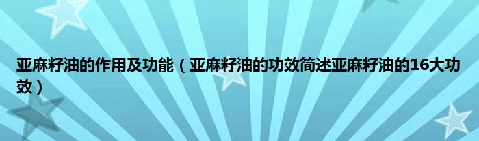 大家好,小科来为大家解答以上问题。亚麻籽油的作用及功能,亚麻籽油的功效简述亚麻籽油的16大功效很多人还不知道,现在让我们一起来看看吧!