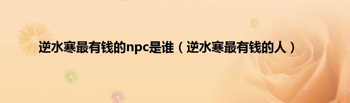 大家好,精选小编来为大家解答以上问题。逆水寒最有钱的npc是谁,逆水寒最有钱的人很多人还不知道,现在让我们一起来看看吧!