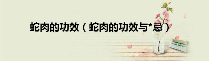 蛇肉的功效与忌讳大伙儿掌握吗,吃蛇对我们的人体是非常好的大伙儿应当都了解,尽管觉得吃蛇很**,可是尽管的滋补养生确是许多的东西也不可以类比的,如今也早已遭受了愈来愈多的人钟爱了。