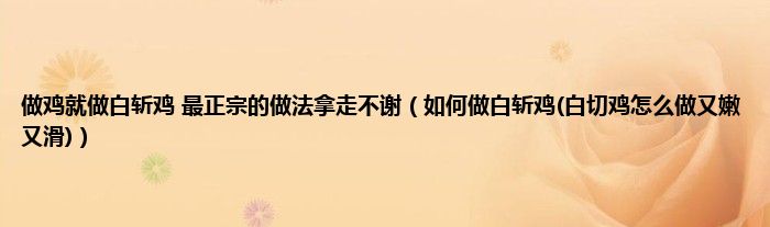 大家好,小科来为大家解答以上问题。做鸡就做白斩鸡 最正宗的做法拿走不谢,如何做白斩鸡(白切鸡怎么做又嫩又滑)很多人还不知道,现在让我们一起来看看吧!