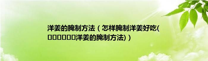 大家好,小科来为大家解答以上问题。洋姜的腌制方法,怎样腌制洋姜好吃( 洋姜的腌制方法)很多人还不知道,现在让我们一起来看看吧!