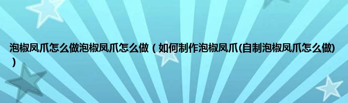 大家好,小科来为大家解答以上问题。泡椒凤爪怎么做泡椒凤爪怎么做,如何制作泡椒凤爪(自制泡椒凤爪怎么做)很多人还不知道,现在让我们一起来看看吧!