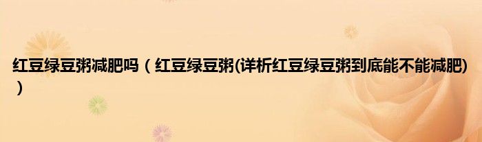 大家好,小科来为大家解答以上问题。红豆绿豆粥减肥吗,红豆绿豆粥(详析红豆绿豆粥到底能不能减肥)很多人还不知道,现在让我们一起来看看吧!