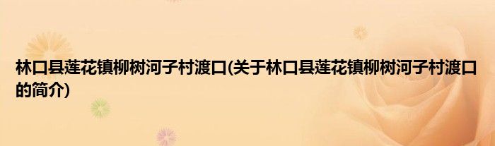 本文关于林口县莲花镇柳树河子村渡口的简介就讲解完毕,希望对大家有所帮助。