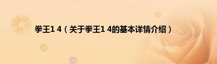本文关于拳王1 4的基本详情介绍就讲解完毕,希望对大家有所帮助。