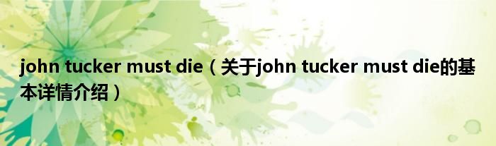 本文关于john tucker must die的基本详情介绍就讲解完毕,希望对大家有所帮助。