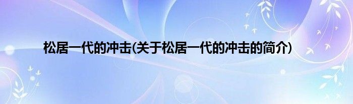 大家好,松居一代的冲击,关于松居一代的冲击的简介很多人还不知道,现在让我们一起来看看吧!