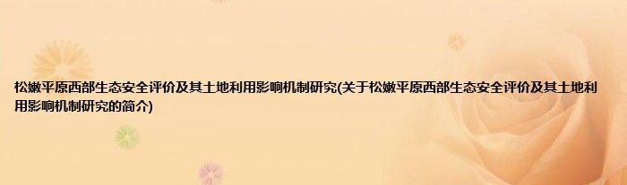 大家好,松嫩平原西部生态安全评价及其土地利用影响机制研究,关于松嫩平原西部生态安全评价及其土地利用影响机制研究的简介很多人还不知道,现在让我们一起来看看吧!