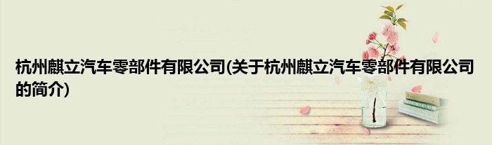 本文关于杭州麒立汽车零部件有限公司的简介就讲解完毕,希望对大家有所帮助。