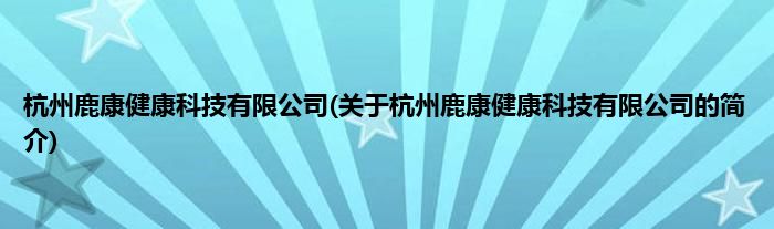 本文关于杭州鹿康健康科技有限公司的简介就讲解完毕,希望对大家有所帮助。