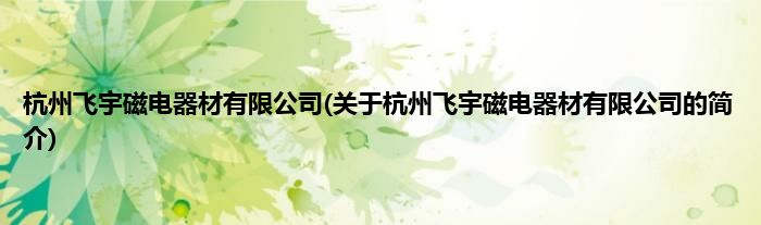 本文关于杭州飞宇磁电器材有限公司的简介就讲解完毕,希望对大家有所帮助。