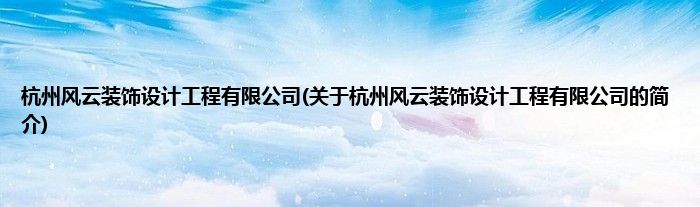 本文关于杭州风云装饰设计工程有限公司的简介就讲解完毕,希望对大家有所帮助。