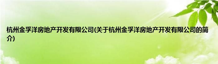 本文关于杭州金孚洋房地产开发有限公司的简介就讲解完毕,希望对大家有所帮助。
